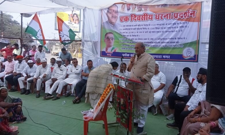 छत्तीसगढ़ प्रयागराज न्यूज़ नवापारा राजिम —-विदित हो की नगरपालिका गोबरा नवापारा मे विभिन्न मदों में की गई राशि वृद्धि को लेकर ब्लॉक कांग्रेस कमेटी के द्वारा एक दिवसीय हल्ला बोल का कार्यक्रम रखा गया जिसमे नगर पालिका परिषद गोबरा नवापारा द्वारा विभिन्न करों में की गई बेतहाशा वृद्धि एवं जनहित से जुड़े मामलों को लेकर ब्लॉक कांग्रेस कमेटी नवापारा के तत्वावधान में एक दिवसीय धरना प्रदर्शन आयोजित किया गया । धरना सुबह 11 बजे से नगर पालिका परिषद गोबरा नवापारा परिसर में किया तदुपरांत मुख्य नगर पालिका अधिकारी के अनुपस्थिति मे इंजिनियर को ज्ञापन सौंप कर अपनी मांगो को रखा गया