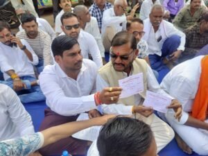 राजिम कल्प कुंभ मेला से एक दिन पूर्व मगरलोड ब्लॉक के जनप्रतिनिधि आमरण अनशन पर बैठे