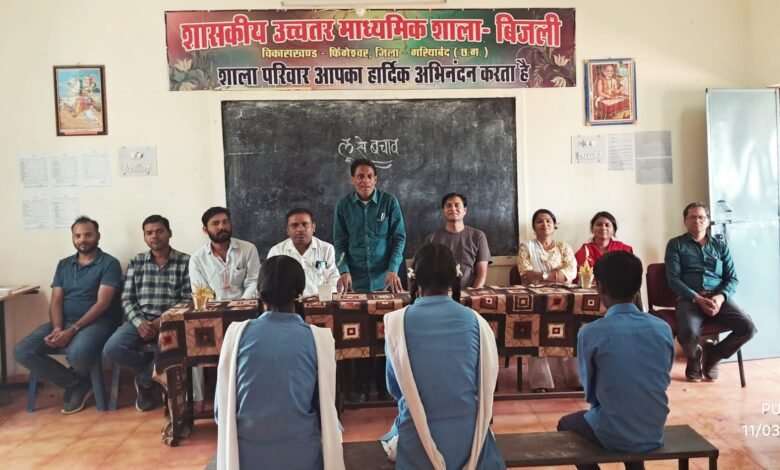 छत्तीसगढ़ प्रयागराज न्यूज़–मार्च माह में लगातार बढ़ रही गर्मी को देखते हुए शासकीय उच्चतर माध्यमिक विद्यालय बिजली में विद्यार्थियों को लू से बचाव के प्रति जागरूक करने के उद्देश्य से विशेष जानकारी दी गई। इस दौरान विद्यार्थियों को गर्मी के मौसम में स्वास्थ्य के प्रति सतर्क रहने और लू से बचने के उपाय बताए गए।