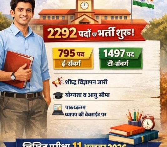 इन पदों में 795 पद ई-संवर्ग की शालाओं तथा 1497 पद टी-संवर्ग की शालाओं में भरे जाएंगे। उम्मीदवारों के लिए शैक्षणिक योग्यता, आयु सीमा और अन्य जरूरी शर्तें विस्तृत विज्ञापन में दी जाएंगी।